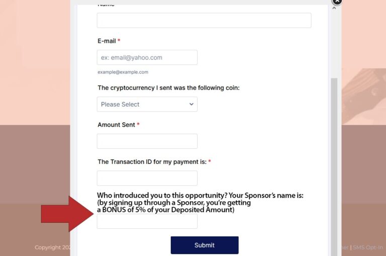 So by them mentioning your name as their Sponsor in the form, once they submit the form, it will automatically input your name into our database while also notifying us that someone that you referred has made their deposit. Thus, this will allow us to track that it was you the affiliate who has got a referral and has earned an affiliate commission. So then we can pay you your sweet 15% affiliate commission of that deposited amount and also add the 5% bonus of the deposited amount to your referral as well.